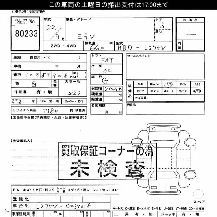 L DBA-L275S KF-VE FF 5MT 658cc 58ps(43kW)/7200rpm AИ-92 885 000