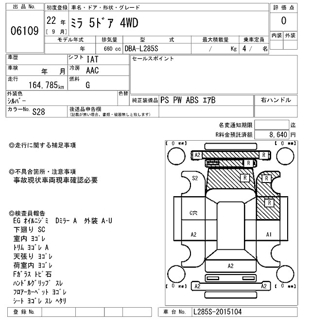 L DBA-L285S KF-VE Full-time 4WD 5MT 658cc 58ps(43kW)/7200rpm AИ-92 1 022 000