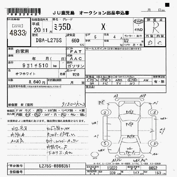 | X | DBA-L275S | KF-VE | FF | 4AT | 658cc | 58ps(43kW)/7200rpm | AИ-92 | 980 000 | |