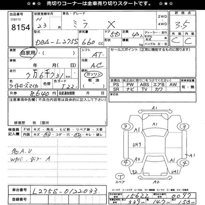 | X | DBA-L275S | KF | FF | 5MT | 658cc | 58ps(43kW)/7200rpm | AИ-92 | 950 000 | |