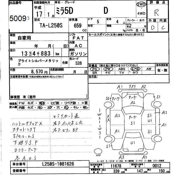 | V | DBA-L250S | EF-VD | FF | 5MT | 659cc | 60ps(44kW)/7600rpm | AИ-92 | 966 000 | |