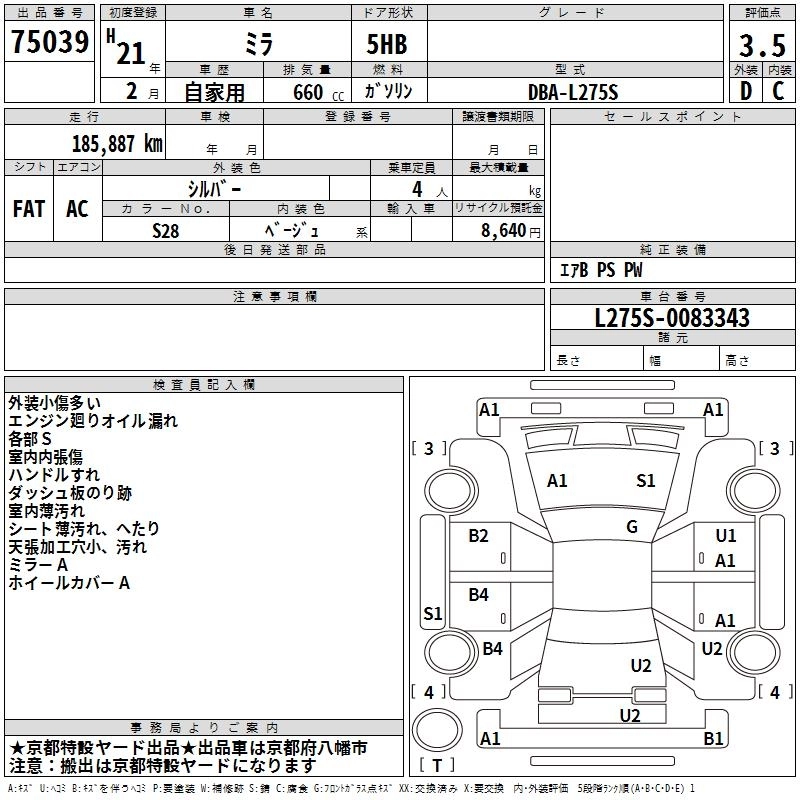 | X LIMITED ER | DBA-L275S | KF-VE | FF | CVT | 658cc | 58ps(43kW)/7200rpm | AИ-92 | 1 000 000 |