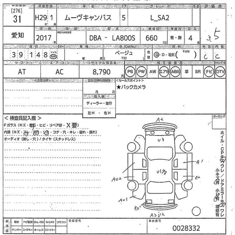 | X SA III | DBA-LA800S | KF | FF | CVT | 658cc | 52ps(38kW)/6800rpm | AИ-92 | 1 360 800 | |