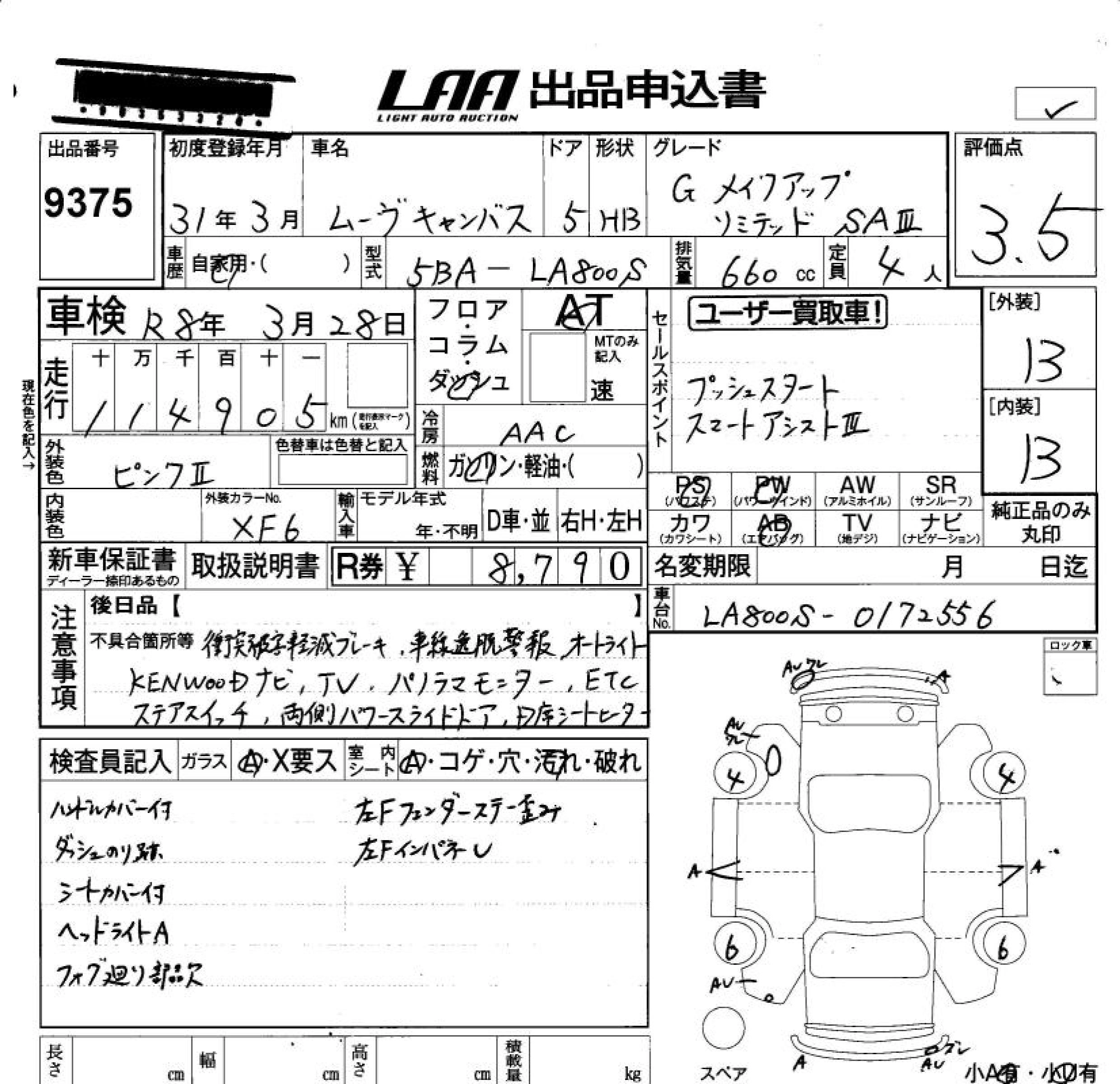 | G MAKE UP LIMITED SA III | 5BA-LA800S | KF | FF | CVT | 658cc | 52ps(38kW)/6800rpm | AИ-92 | 1 584 000 | |
