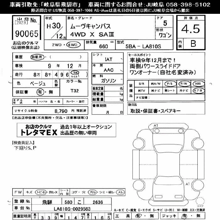 | G MAKE UP LIMITED SA III | 5BA-LA810S | KF | Full-time 4WD | CVT | 658cc | 52ps(38kW)/6800rpm | AИ-92 | 1 679 400 | |