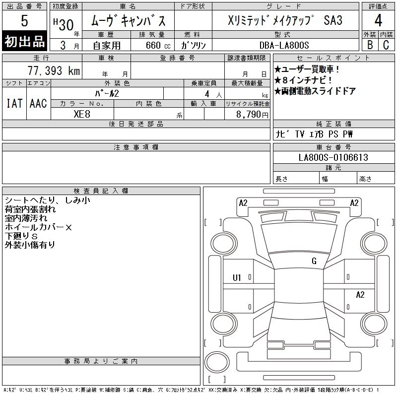 | G MAKE UP LIMITED SA III | 5BA-LA800S | KF | FF | CVT | 658cc | 52ps(38kW)/6800rpm | AИ-92 | 1 555 200 | |