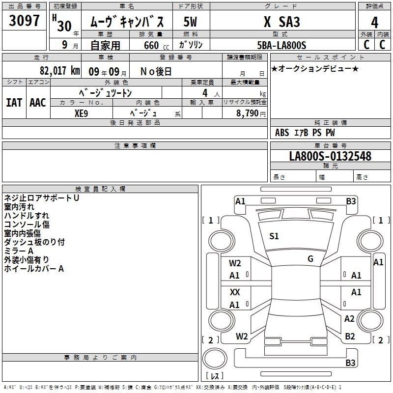 | X SA III | 5BA-LA800S | KF | FF | CVT | 658cc | 52ps(38kW)/6800rpm | AИ-92 | 1 404 000 | |