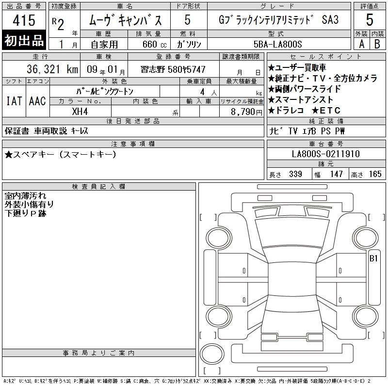 DAIHATSU MOVE CANBUS 2020 г., лот № 415