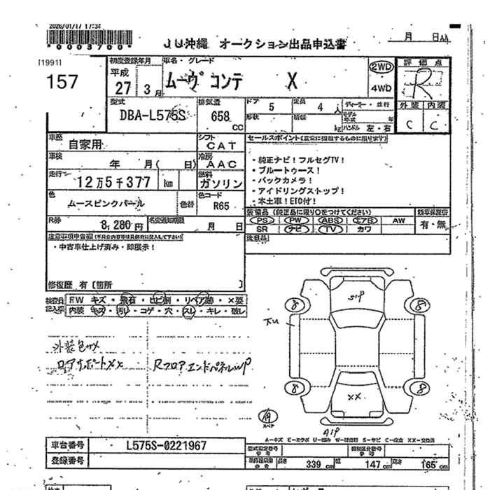| CUSTOM X | DBA-L575S | KF | FF | CVT | 658cc | 52ps(38kW)/6800rpm | AИ-92 | 1 362 857 | |