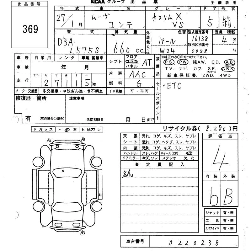 | CUSTOM X | DBA-L575S | KF | FF | CVT | 658cc | 52ps(38kW)/6800rpm | AИ-92 | 1 362 857 | |