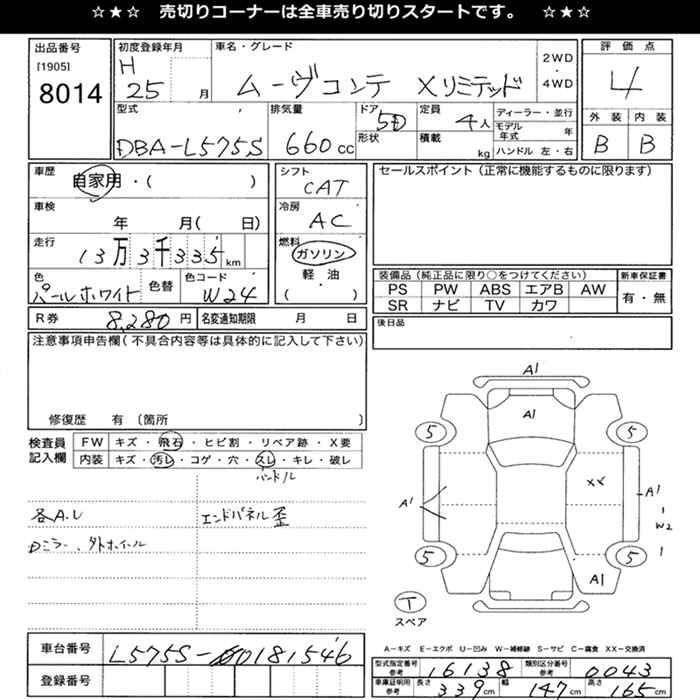 | X | DBA-L575S | KF | FF | CVT | 658cc | 52ps(38kW)/6800rpm | AИ-92 | 1 225 000 | |