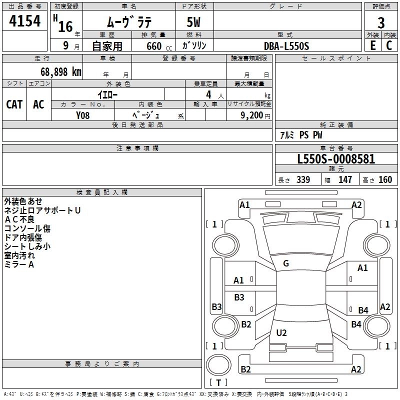 | X | DBA-L550S | EF-VE | FF | 4AT | 659cc | 58ps(43kW)/7600rpm | AИ-92 | 1 123 500 | |