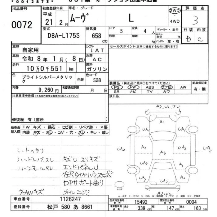 | L VS | DBA-L175S | KF-VE | FF | 4AT | 658cc | 58ps(43kW)/7200rpm | AИ-92 | 1 125 000 |