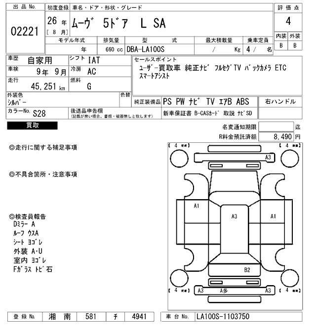 | L SMART SELECTION SA | DBA-LA100S | KF | FF | CVT | 658cc | 52ps(38kW)/6800rpm | AИ-92 | 1 170 572 |