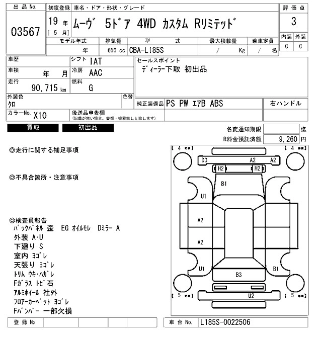 MEMORIAL EDITION DBA-L175S KF-VE FF CVT 658cc 58ps(43kW)/7200rpm AИ-92 1 176 000