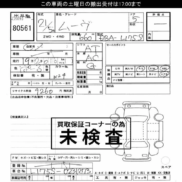 | L | DBA-L175S | KF-VE | FF | 4AT | 658cc | 58ps(43kW)/7200rpm | AИ-92 | 1 050 000 | |