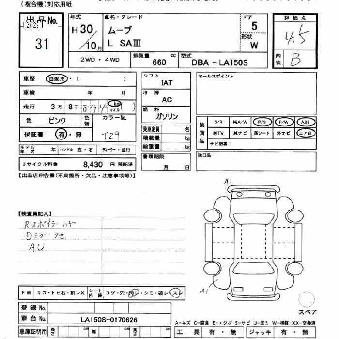 | CUSTOM RS HYPER LIMITED SA III | DBA-LA150S | KF | FF | CVT | 658cc | 64ps(47kW)/6400rpm | AИ-92 | 1 625 400 | |