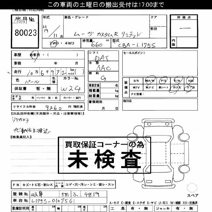 | CUSTOM R LIMITED | CBA-L175S | KF-DET | FF | 4AT | 658cc | 64ps(47kW)/6000rpm | AИ-92 | 1 470 000 |