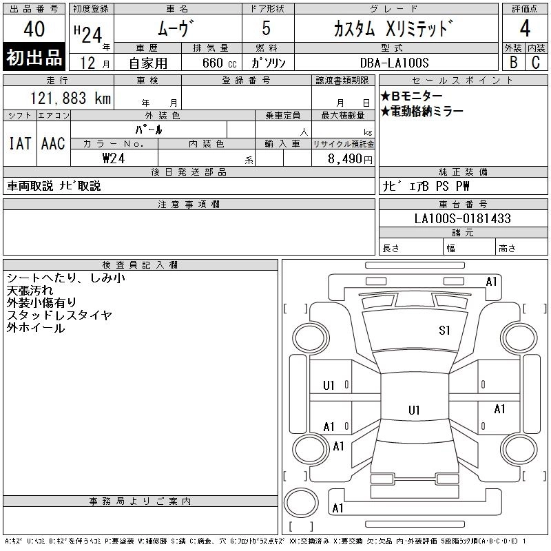 | X SA | DBA-LA100S | KF | FF | CVT | 658cc | 52ps(38kW)/6800rpm | AИ-92 | 1 250 000 | |