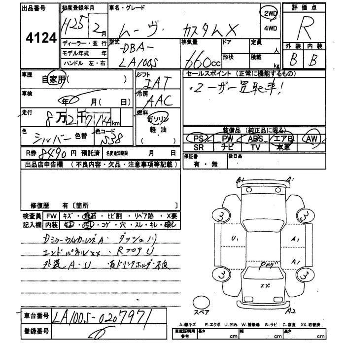 | X SA | DBA-LA100S | KF | FF | CVT | 658cc | 52ps(38kW)/6800rpm | AИ-92 | 1 250 000 | |
