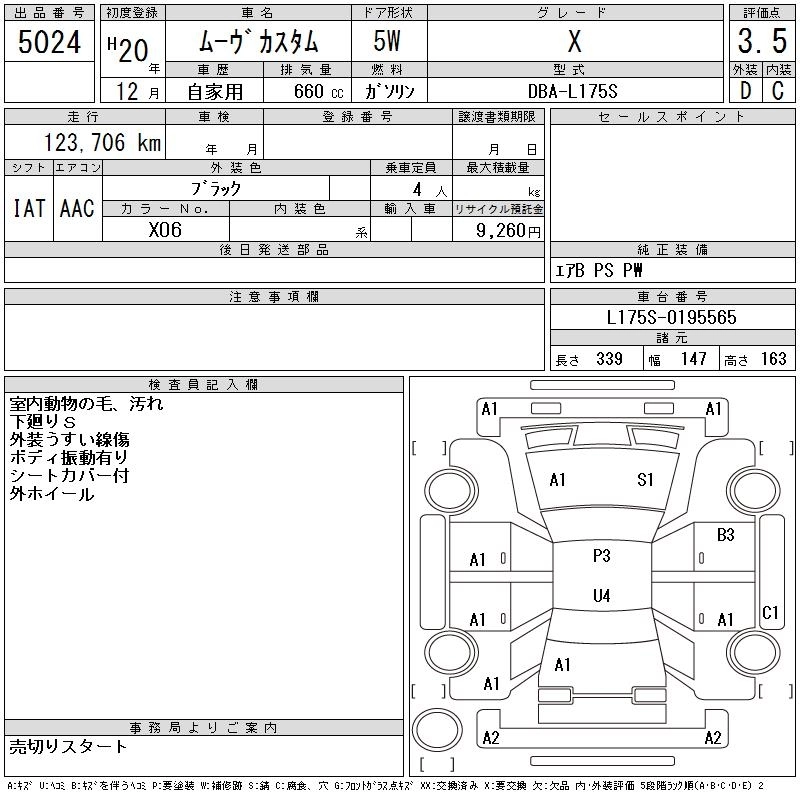 | CUSTOM X LIMITED | DBA-L175S | KF-VE | FF | CVT | 658cc | 58ps(43kW)/7200rpm | AИ-92 | 1 400 000 | |