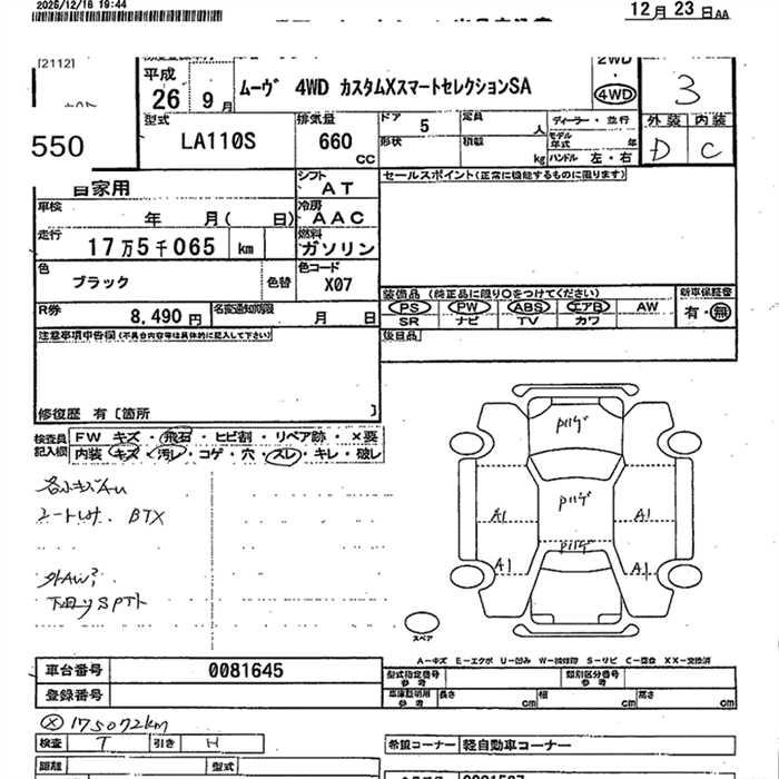 | CUSTOM X VS SMART SELECTION SN | DBA-LA100S | KF | FF | CVT | 658cc | 52ps(38kW)/6800rpm | AИ-92 | 1 450 000 | |
