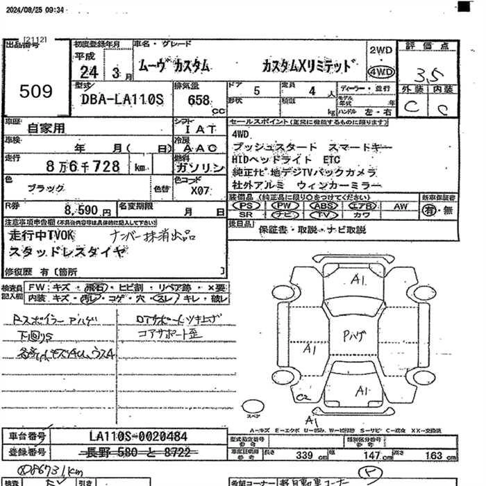 | CUSTOM X LIMITED SA | DBA-LA100S | KF | FF | CVT | 658cc | 52ps(38kW)/6800rpm | AИ-92 | 1 470 000 | |