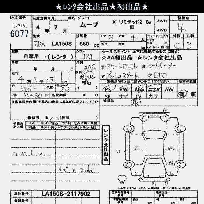 Статус выставлен на аукцион Лот 6077 Аукцион JU Saitama Дата аукциона 03.02.2026