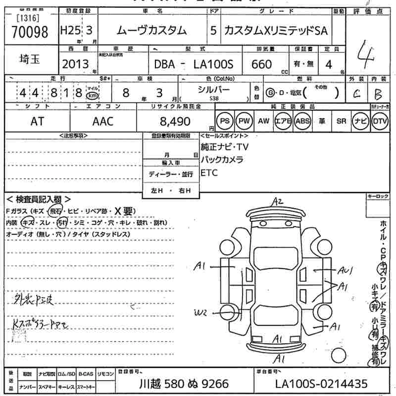 | CUSTOM X LIMITED SA | DBA-LA100S | KF | FF | CVT | 658cc | 52ps(38kW)/6800rpm | AИ-92 | 1 470 000 | |
