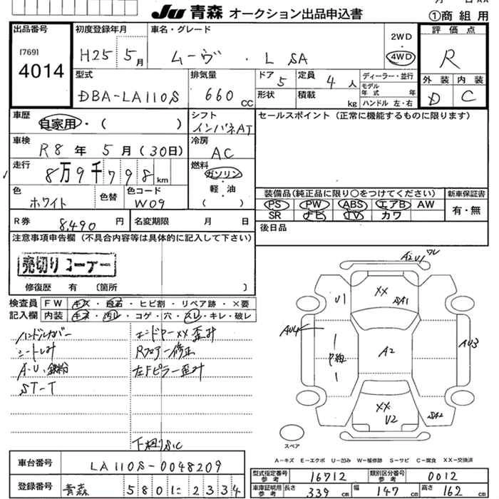 Статус выставлен на аукцион Лот 4014 Аукцион JU Aomori Дата аукциона 04.02.2026