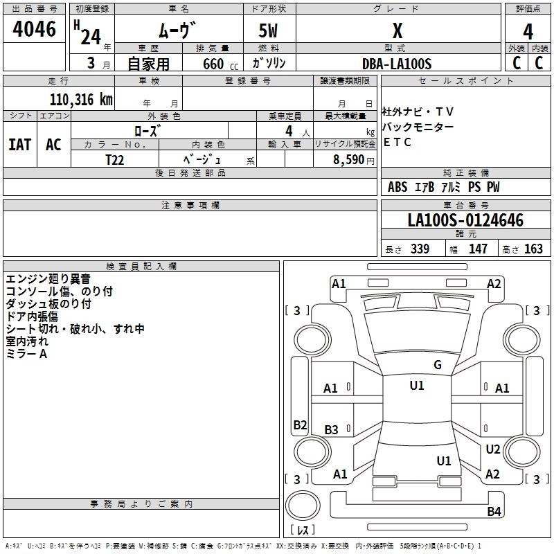 | X SA | DBA-LA100S | KF | FF | CVT | 658cc | 52ps(38kW)/6800rpm | AИ-92 | 1 250 000 | |