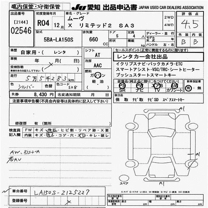 Статус выставлен на аукцион Лот 2546 Аукцион JU Aichi Дата аукциона 05.02.2026