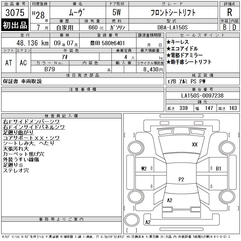 | L | DBA-LA150S | KF | FF | CVT | 658cc | 52ps(38kW)/6800rpm | AИ-92 | 1 264 000 | |
