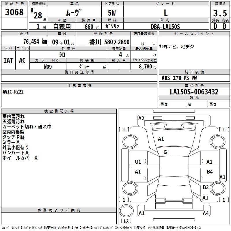 | CUSTOM RS SA II | DBA-LA150S | KF | FF | CVT | 658cc | 64ps(47kW)/6400rpm | AИ-92 | 1 603 800 | |