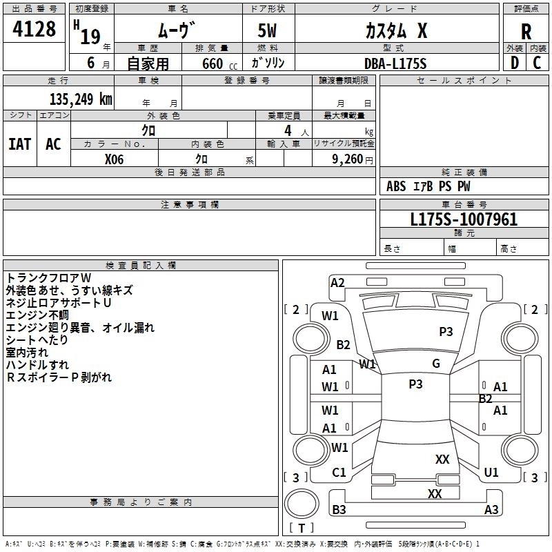 | CUSTOM R LIMITED | CBA-L175S | KF-DET | FF | 4AT | 658cc | 64ps(47kW)/6000rpm | AИ-92 | 1 470 000 |