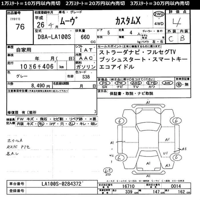 | X TURBO SMART SELECTION SN | DBA-LA100S | KF | FF | CVT | 658cc | 64ps(47kW)/6400rpm | AИ-92 | 1 386 286 | |