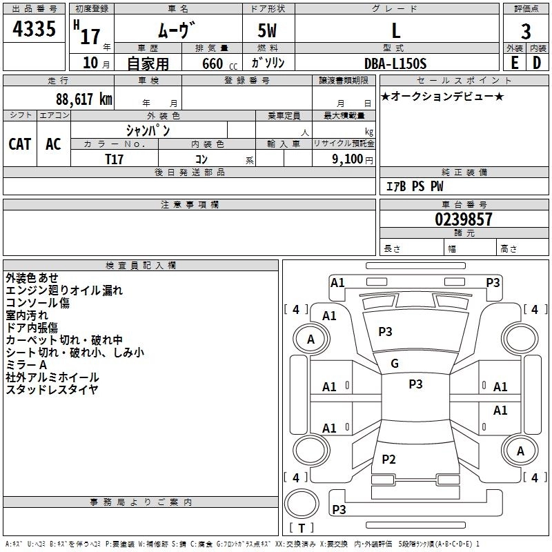 | CUSTOM X HDD NAVI EDITION | CBA-L150S | EF-VE | FF | 4AT | 659cc | 58ps(43kW)/7600rpm | AИ-92 | 1 390 200 | |