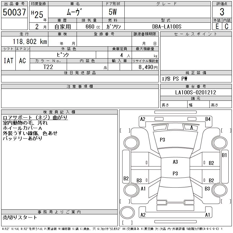 | X SA | DBA-LA100S | KF | FF | CVT | 658cc | 52ps(38kW)/6800rpm | AИ-92 | 1 250 000 | |