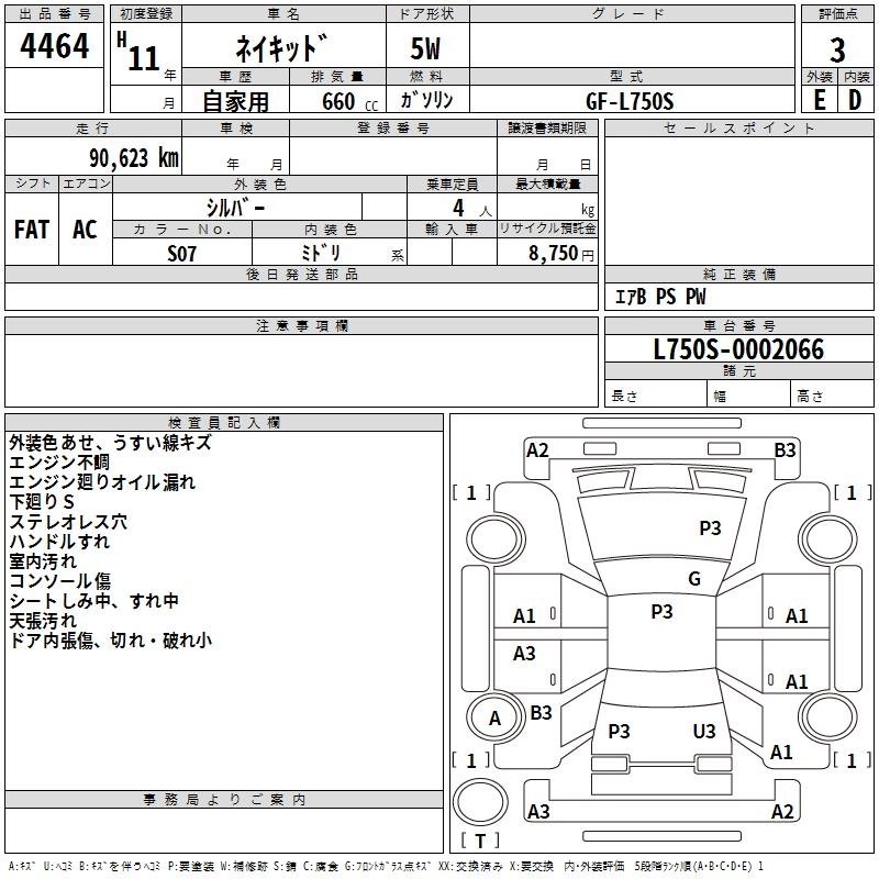 | BASEGRADE | GH-L750S | EF-VE | FF | 4AT | 659cc | 58ps(43kW)/7600rpm | AИ-92 | 999 000 | |