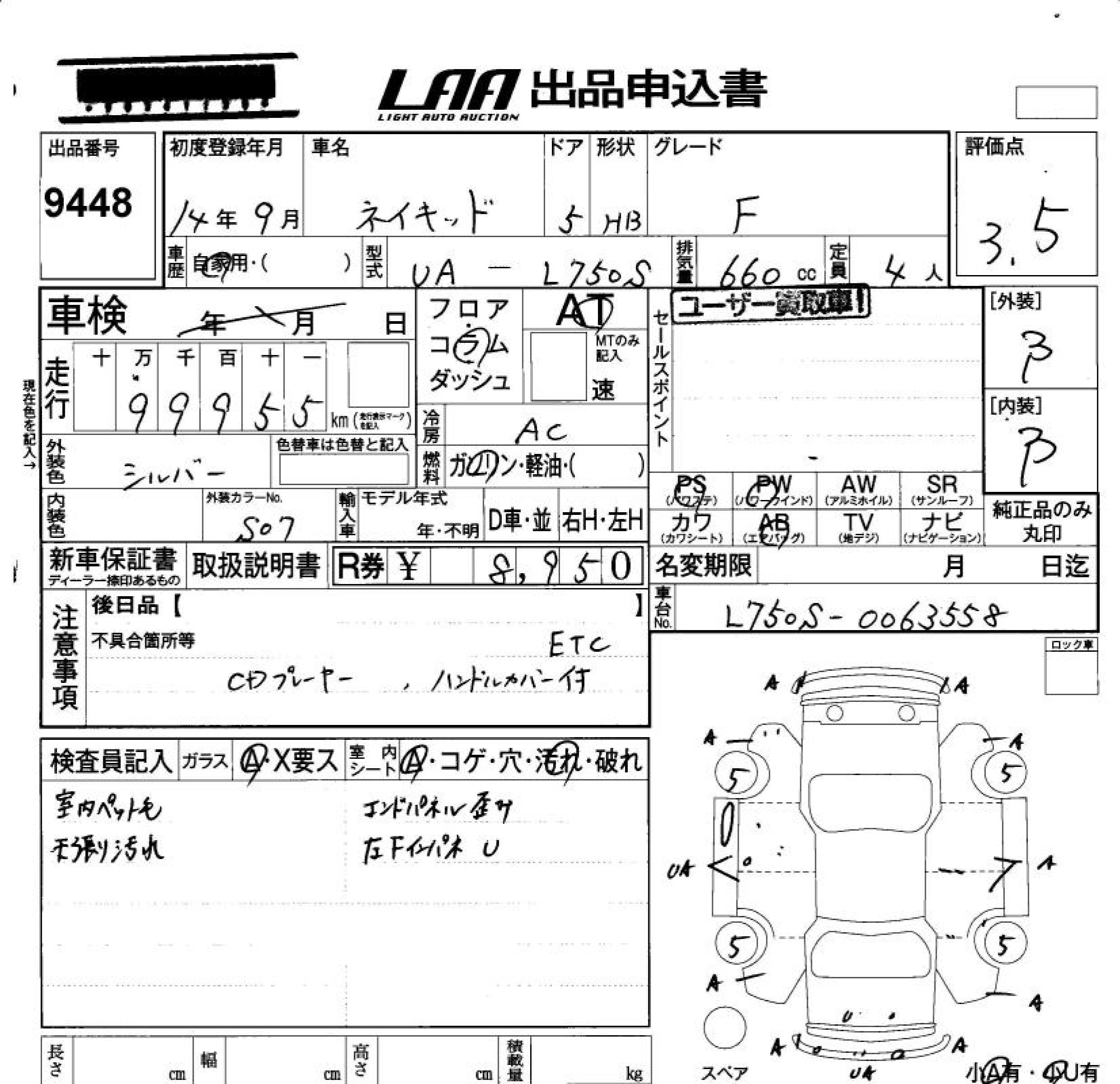 | F STAR EDITION | UA-L750S | EF-VE | FF | 4AT | 659cc | 58ps(43kW)/7600rpm | AИ-92 | 988 000 | |