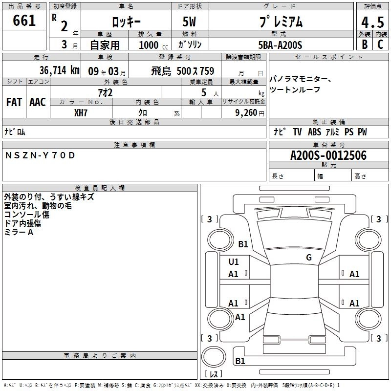 L 5BA-A200S 1KR-VET FF CVT 996cc 98ps(72kW)/6000rpm AИ-92 1 705 000