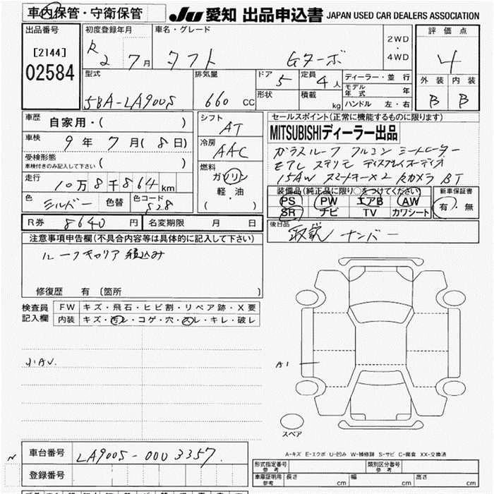 | G TURBO | 5BA-LA900S | KF | FF | CVT | 658cc | 64ps(47kW)/6400rpm | AИ-92 | 1 606 000 | |