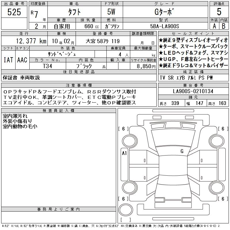 DAIHATSU TAFT 2025 г., лот № 525