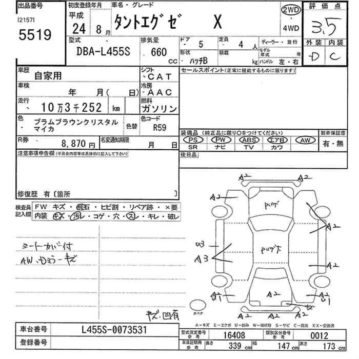 | X | DBA-L455S | KF | FF | CVT | 658cc | 52ps(38kW)/6800rpm | AИ-92 | 1 250 000 | |