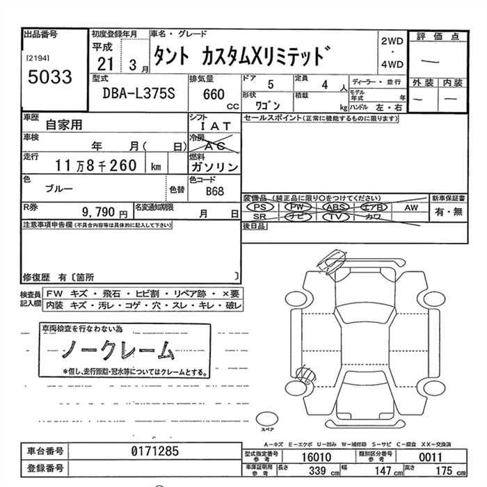 | CUSTOM X LIMITED | DBA-L375S | KF-VE | FF | CVT | 658cc | 58ps(43kW)/7200rpm | AИ-92 | 1 475 000 | |