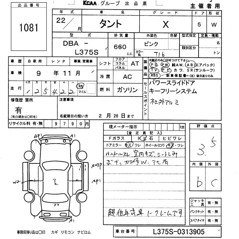 | CUSTOM X | DBA-L375S | KF-VE | FF | CVT | 658cc | 58ps(43kW)/7200rpm | AИ-92 | 1 500 000 | |
