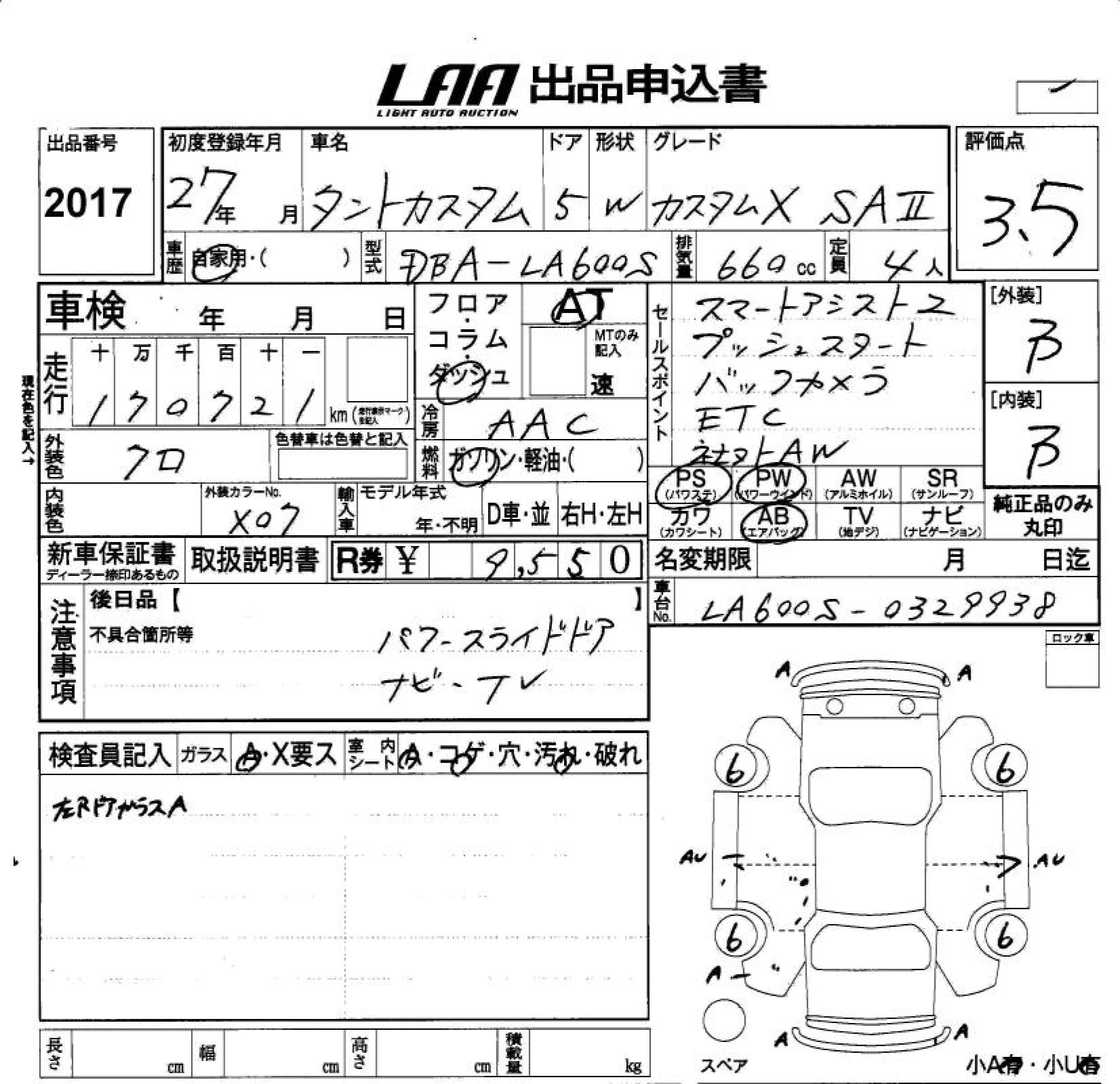 Статус продан Лот 2017 Аукцион LAA Okayama Дата аукциона 30.01.2026