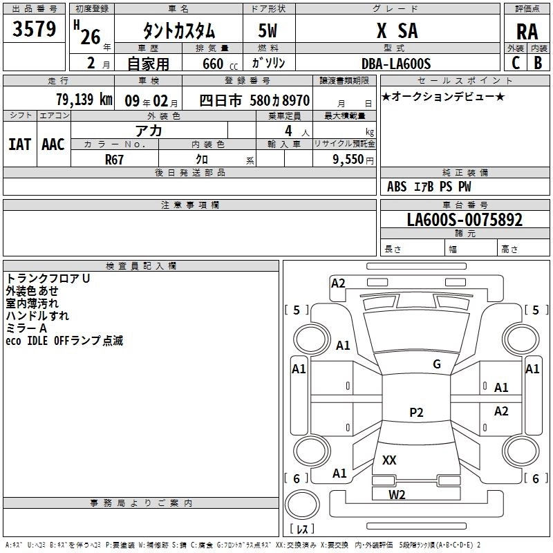 | CUSTOM X SMART SELECTION SN | DBA-LA600S | KF | FF | CVT | 658cc | 52ps(38kW)/6800rpm | AИ-92 | 1 602 000 | |