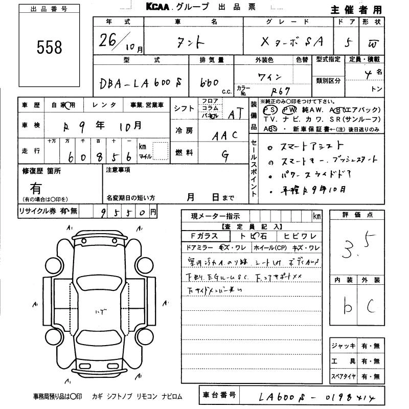 DAIHATSU TANTO 2014 г., лот № 558