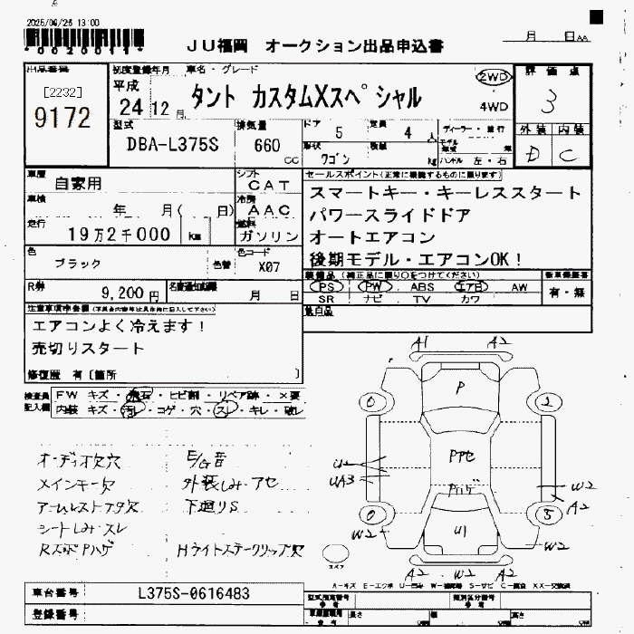 | CUSTOM X SPECIAL | DBA-L375S | KF | FF | CVT | 658cc | 52ps(38kW)/6800rpm | AИ-92 | 1 490 000 | |